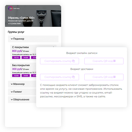 В соцсетях вы тратите много времени и денег, чтобы клиенты вас заметили. В iGO клиенты сами ищут вас и выбирают по визитке и рейтингу.
